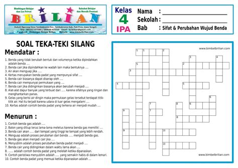 Soal TekaTeki Silang (TTS) SD IPA Kelas 3 Bab Sifat Benda Padat, Cair. Tts benda teka teki silang ipa sifat jawaban padat bab kunci cair disertai kurikulum kaca mendatar
